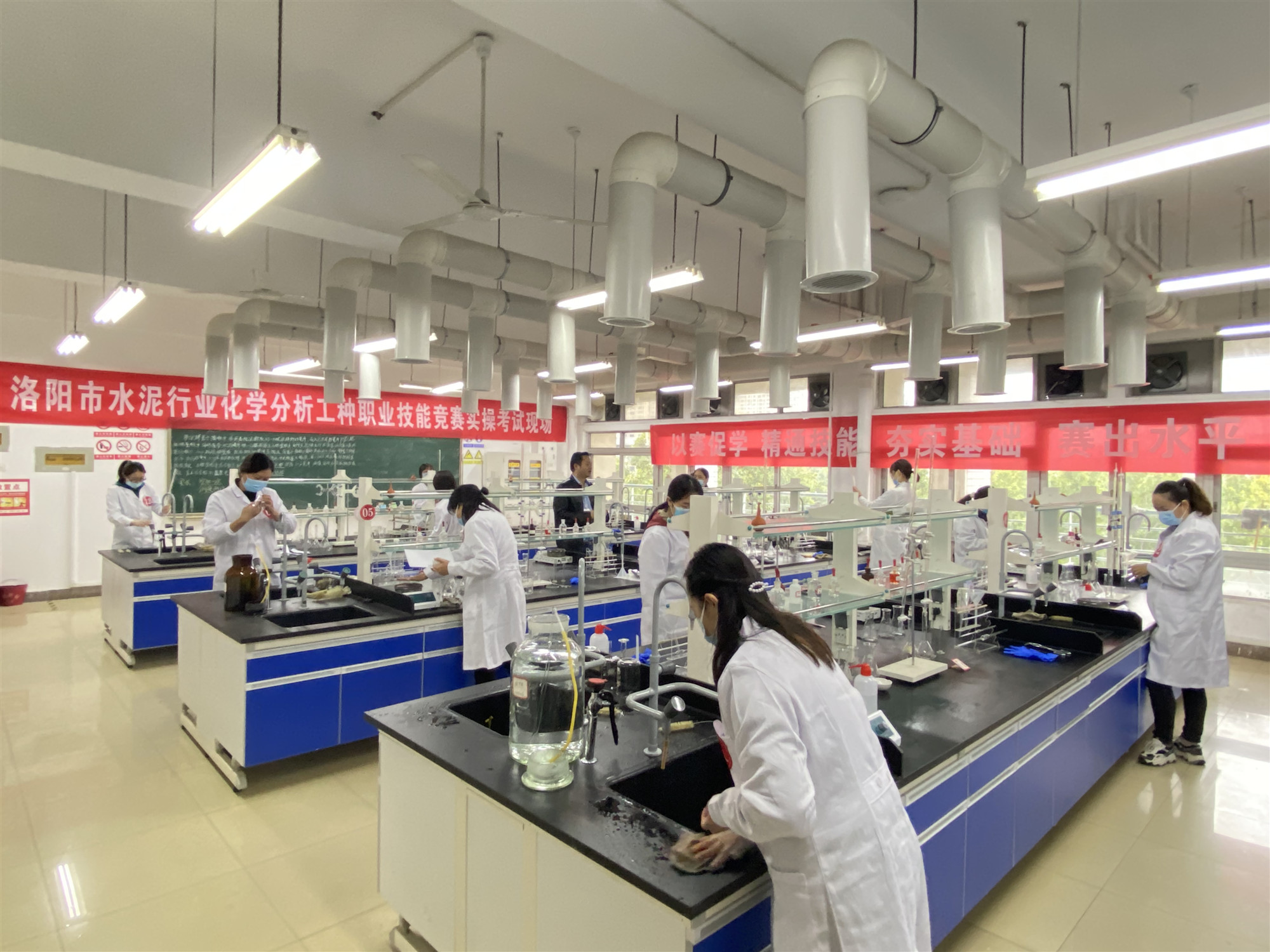 本次競(jìng)賽包括理論知識(shí)考試和實(shí)際操作考試兩部分,理論知識(shí)考試采用閉卷方式進(jìn)行,實(shí)際操作考試在洛陽(yáng)理工學(xué)院環(huán)化學(xué)院實(shí)驗(yàn)中心進(jìn)行,實(shí)操主要設(shè)有測(cè)定水泥中的氧化鈣、氧化鎂、三氧化二鐵、三氧化二鋁、二氧化硅的含量等多項(xiàng)考核內(nèi)容。